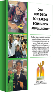 The Don Diego Scholarship Foundation promotes education in a fair and fiscally sound manner by providing scholarships to deserving San Diego area graduating high school seniors and graduates who are associated with activities at the Del Mar Fairgrounds, including the San Diego County Fair. The Don Diego Scholarship Foundation also provides grants for agricultural education.
